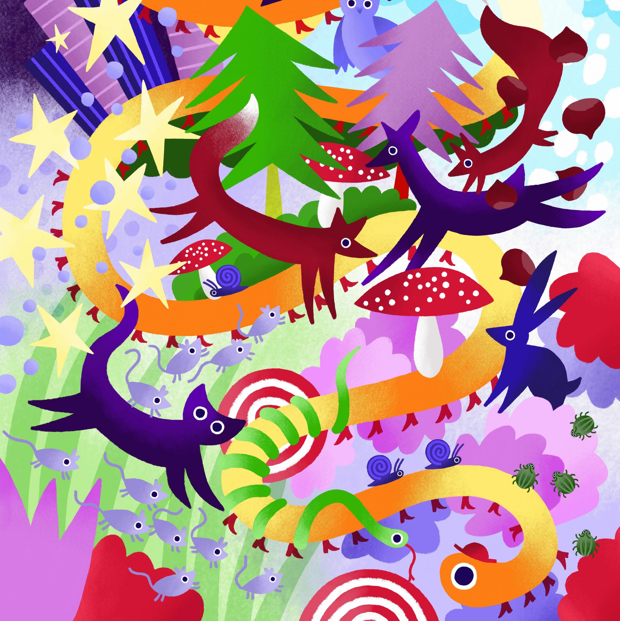 In den 9 fantasievollen Liedern erfahren wir, worüber die Tiere im Wald reden, was alles (nicht) gezählt werden kann, und wer am Abendhimmel auf dem Velo vorbeifliegt.